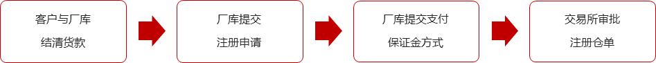 客戶(hù)與廠(chǎng)庫結清貨款等費用后,廠(chǎng)庫通過(guò)交易所倉單系統提交倉單注冊申請。
