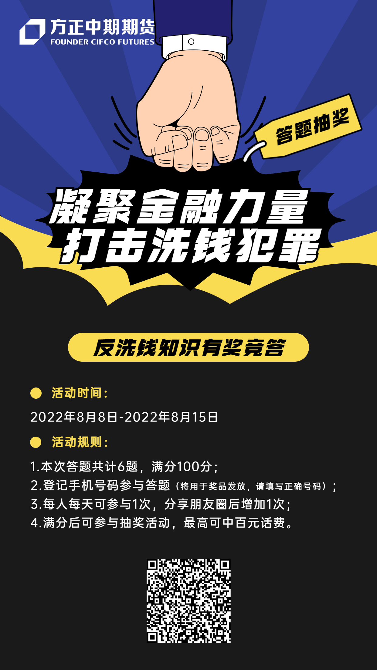 【反洗錢(qián)宣傳月】凝聚金融力量 打擊洗錢(qián)犯罪 | 反洗錢(qián)知識有獎競答_方正中期期貨