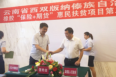 近日,在上海期貨交易所的支持下,方正中期期貨有限公司攜勐臘縣人民政府、人保財險等多方繼2017年再次簽署“橡膠期貨價(jià)格保險+期貨”惠農產(chǎn)業(yè)扶貧項目戰略合作協(xié)議,在勐臘縣政府、膠農代表、保險公司及各期貨公司及子公司代表等80余人的見(jiàn)證下,順利舉辦天然橡膠“保險+期貨”惠民扶貧項目第二階段簽約儀式。