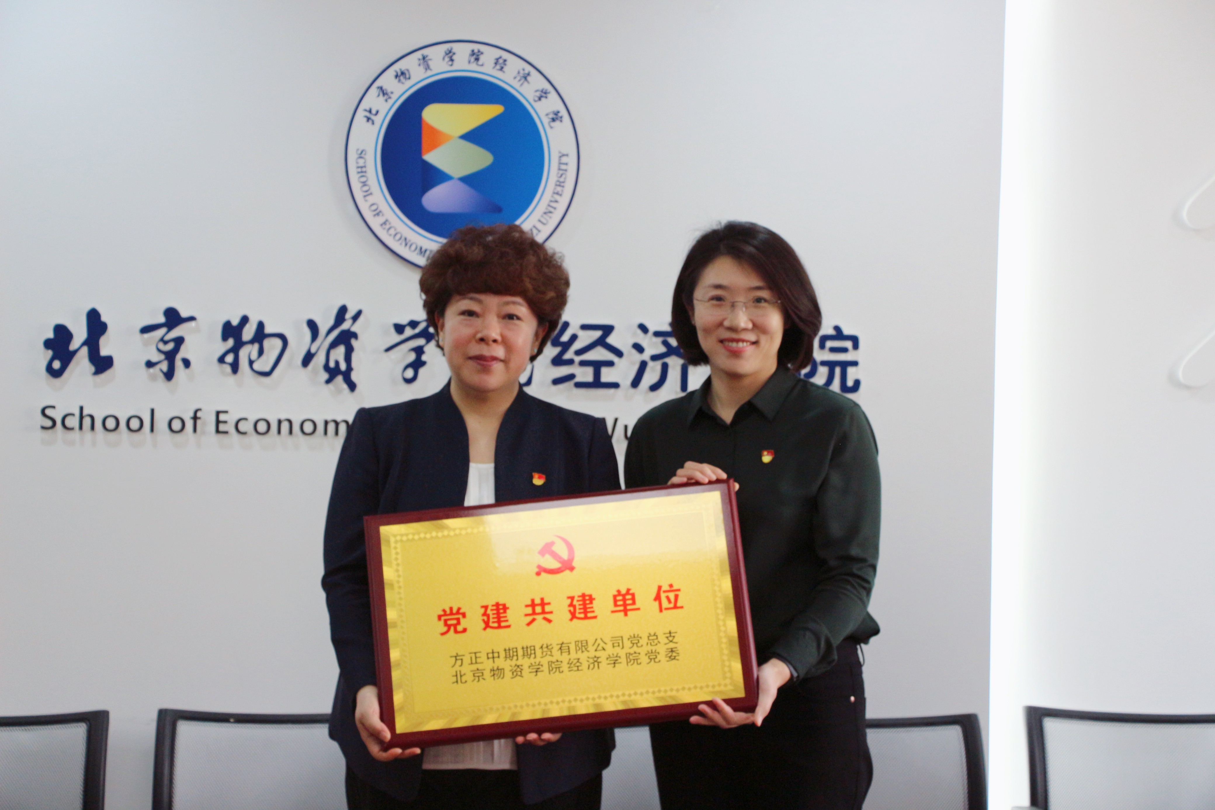 在雙方出席人員的共同見(jiàn)證下,方正中期期貨黨總支與北京物資學(xué)院經(jīng)濟學(xué)院黨委正式簽訂了黨建共建協(xié)議書(shū),付莉書(shū)記向方正中期期貨授予“黨建共建單位”牌匾。