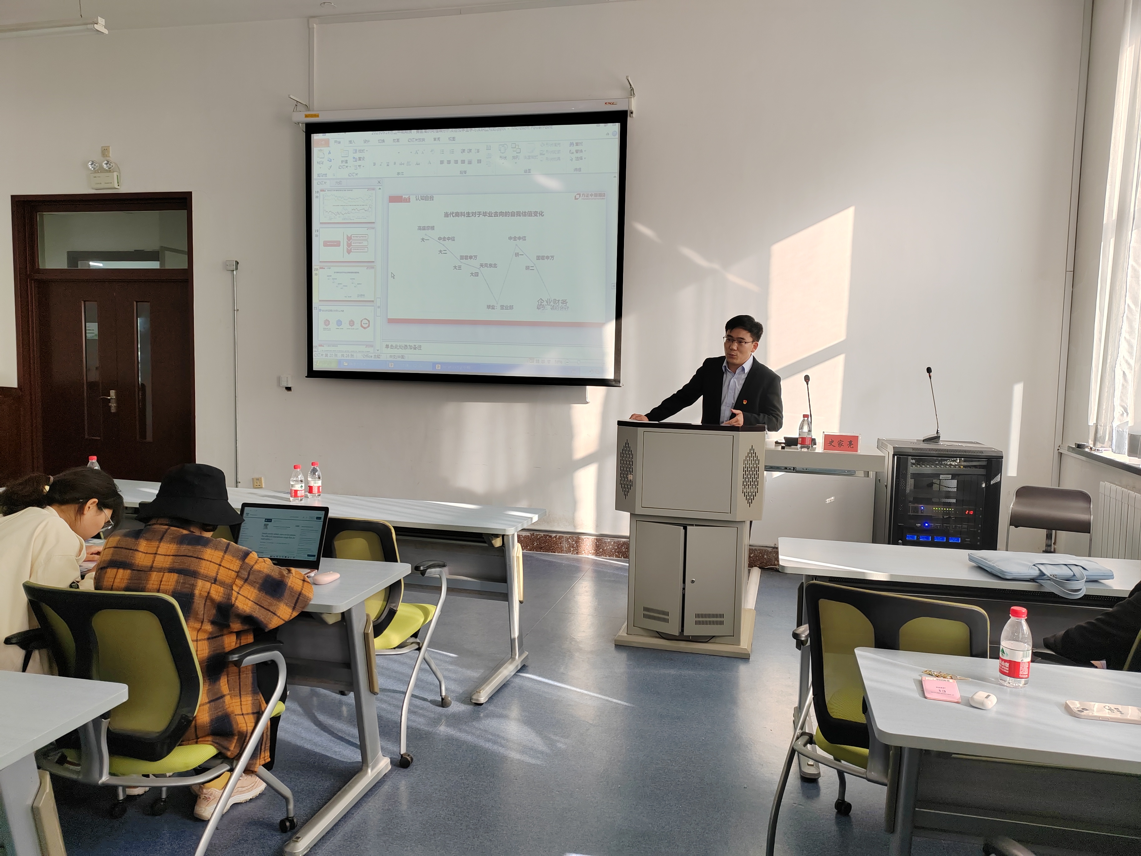 活動(dòng)最后,公司黨總支委員、研究院院長(cháng)王駿,人力資源部總經(jīng)理鄭超,研究院稀有貴金屬研究中心總監史家亮,分別就期貨業(yè)態(tài)與商品產(chǎn)業(yè)鏈分析、人才選拔培育及大學(xué)生擇業(yè)建議、貴金屬研究框架和大學(xué)生職業(yè)規劃等方面,為經(jīng)濟學(xué)院學(xué)子帶來(lái)三堂分享課,并進(jìn)行現場(chǎng)交流和招聘宣講,讓學(xué)子們近距離接觸期貨行業(yè)、感受期貨公司,深入了解企業(yè)需要什么樣的人才,幫助學(xué)子更好地做出職業(yè)規劃。