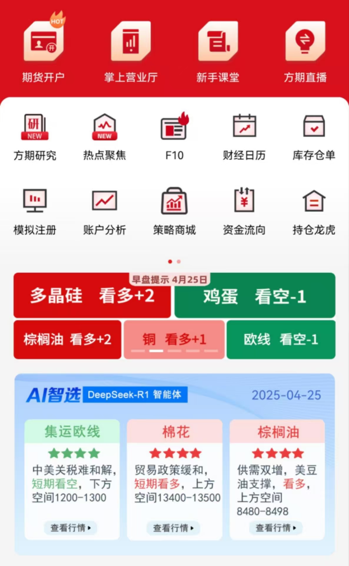 近日,方正中期期貨與同花順聯(lián)合開(kāi)發(fā)的首個(gè)大模型 Agentic應用——“AI智選”欄目在方小期APP正式上線(xiàn)。作為方正中期期貨推出的首款對客大模型應用,“AI智選”基于DeepSeek-R1大模型深度調校,通過(guò)高效研讀公司期貨研究院發(fā)布的高質(zhì)量研報及市場(chǎng)信息,為交易者從眾多品種中甄選值得關(guān)注的中長(cháng)期機會(huì )。