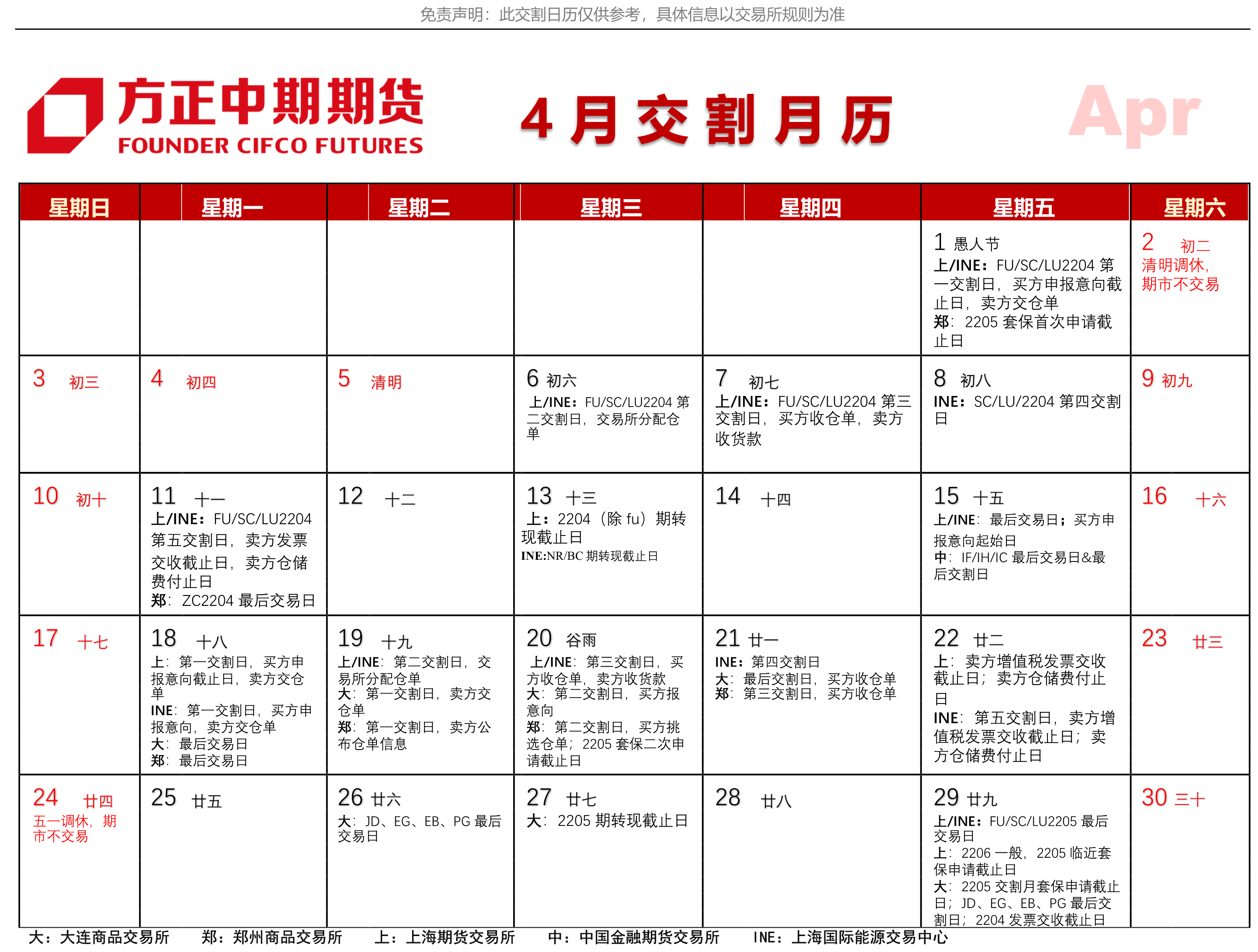 4月交割月歷